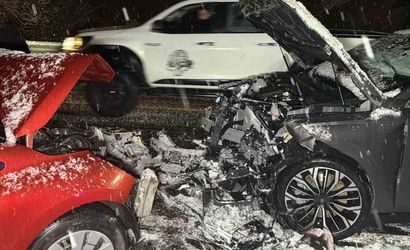 Düzce’de yoğun kar yağışının etkili olduğu Gölyaka bağlantı yolunda, kayganlaşan yolda iki araç kafa kafaya çarpıştı. Kazada araçlar hurdaya dönerken, ilk belirlemelere göre 7 kişi yaralandı.