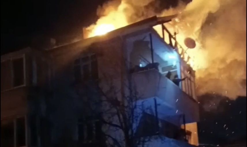 DÜZCE’DE 2025 YILININ SON GÜNÜNDE KUYUDÜZÜ KÖYÜNDE 3 KATLI BİNANIN ÇATISINDA YANGIN ÇIKTI. ALEV TOPUNA DÖNEN EVDEKİ YANGIN GÜÇLÜKLE SÖNDÜRÜLDÜ.