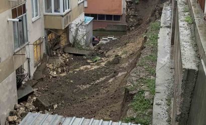 Edirne'de etkili olan sağanak yağışın ardından bir binanın istinat duvarı yıkıldı. Olayda, duvarın bitişiğinde bulunan iki evin balkonunda hasar meydana geldi.