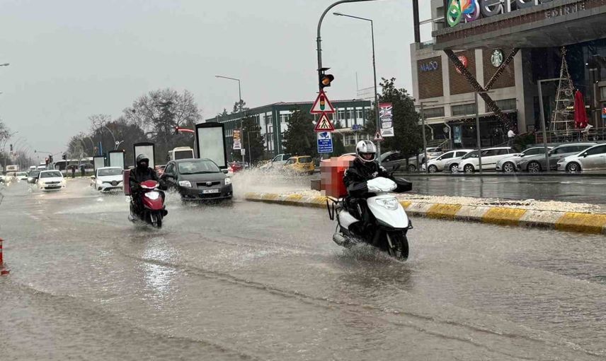Edirne'de etkili olan sağanak yağışın ardından kent genelinde birçok cadde ve yol suyla kaplandı. Oluşan yoğun su birikintileri nedeniyle bazı yollar çift yönlü olarak trafiğe kapatıldı.