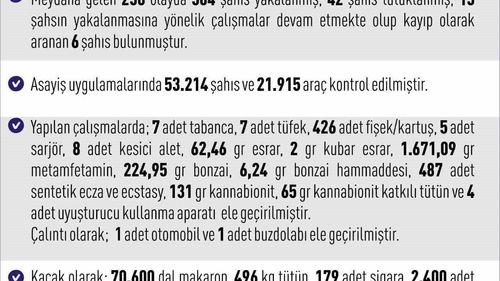 Elazığ'da 11-18 Ocak 2026'da 238 olayda 304 şahıs yakalandı, 42 tutuklandı; çok sayıda denetim ve uyuşturucu ile kaçak eşya ele geçirildi.