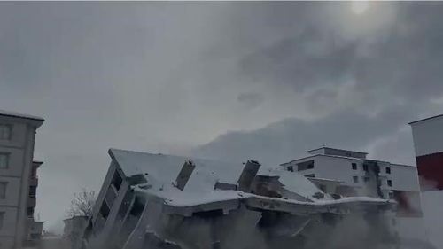 Kahramanmaraş merkezli depremde ağır hasar alan Elazığ Doğukent Mahallesi'ndeki 5 kat, 10 daireli bina iş makinesiyle yıkıldı; yıkım anı cep telefonuyla kaydedildi.