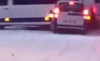 ELAZIĞ’DA KARLI YOLDA DURAMAYAN HAFİF TİCARİ ARAÇ, MİNİBÜSE ÇARPTI. KAZADA MADDİ HASAR MEYDANA GELDİ