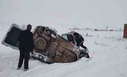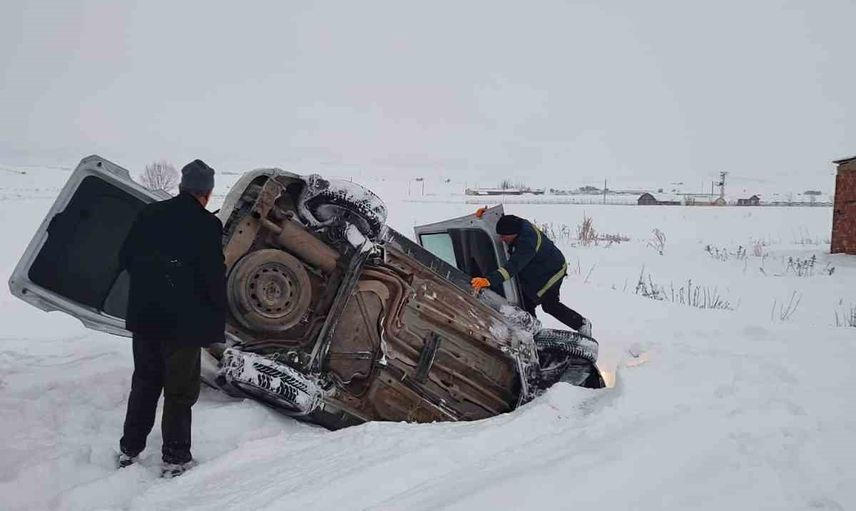Elazığ Karakoçan'da karda kayan hafif ticari araç devrildi