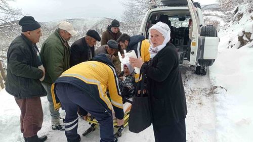 Erbaa'da İlçe Özel İdaresi ekipleri, karla kapanan yolu açarak rahatsızlanan 90 yaşındaki F.T.'nin ambulansla Erbaa Devlet Hastanesi'ne sevkini sağladı.