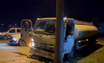 Tekirdağ’ın Ergene ilçesinde gece saatlerinde meydana gelen kazada, yolda çıkan koyun sürüsü nedeniyle manevra yapan bir su tankeri beton elektrik direğine çarptı.