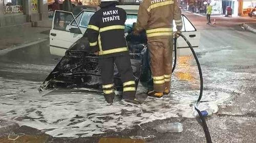Hatay'ın Erzin ilçesinde Atatürk Parkı mevkiinde seyir halindeki 31 YD 348 plakalı otomobil motorundan başlayarak alevlere teslim oldu; araç kullanılamaz hale geldi.