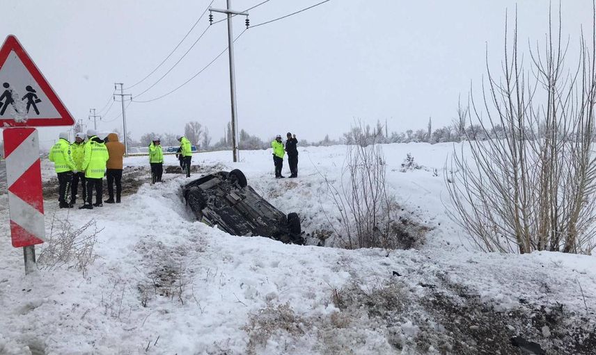 Erzincan-Sivas karayolunda öğle saatlerinde meydana gelen kazada, kardan dolayı kontrolden çıkan polis aracı Sarıgöl Mahallesi mevkiinde şarampole yuvarlandı. Kazada araçta bulunan iki polis yaralandı.