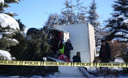 ERZURUM’DA MEYDANA GELEN KAZADA BİR KAMYON HIZINI ALAMAYARAK ORTA REFÜJÜ AÇTI VE TAKLA ATTI.