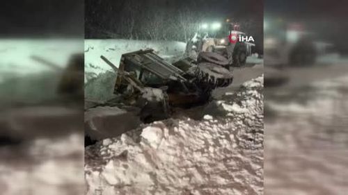 Erzurum Karayazı'da Kar Temizleme Aracı Devrildi