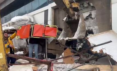 Kurtarma çalışmalarında zamanla yarışan ekipler, müdahale için iş makinası kullanarak yangının meydana geldiği işletmenin duvar ve camlarını yıktı. İçeri giren ekipler yaralıları sedye ile alarak binadan çıkarmayı başardı.