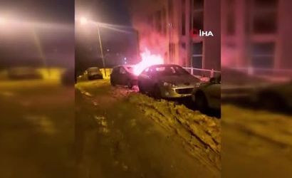 Erzurum'un Yakutiye ilçesi Çaykara Caddesi'nde, öğretmenevi arkasında park halinde bulunan bir otomobil henüz bilinmeyen bir nedenle alev aldı.
