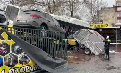 Esenler'de İETT otobüsü, direksiyon hakimiyetinin kaybedilmesi sonucu otoparka daldı