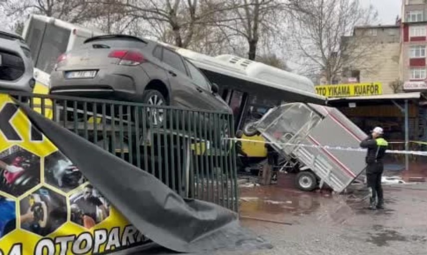 İETT otobüsü, direksiyon hakimiyetinin kaybedilmesi sonucu Esenler'de bir otoparka daldı.
