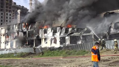 Esenyurt’taki bir inşaat sahasında işçilerin kaldığı konteynırda bilinmeyen nedenle yangın çıktı; alevler hızla büyüdü, itfaiye sevk edildi.