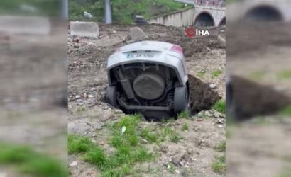 Aracın düştüğü anlar, çevredeki bir vatandaşın cep telefonu kamerasına yansıdı. Görüntülerde aracın aniden çukura sürüklendiği görülüyor.