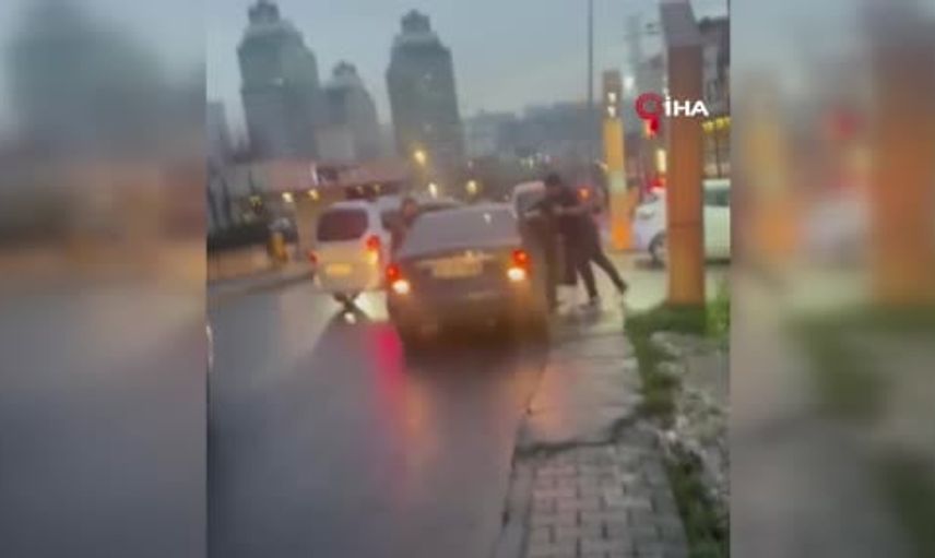 İddiaya göre, trafikte 2 sürücü arasında çıkan yol verme tartışmasında öfkelenen bir şahıs ve arkadaşı, tartıştığı aracın önünü keserek otomobilde bulunan vatandaşa tekme ve yumruklarla saldırdı. Görüntülerde saldırganlardan birinin otomobildeki vatandaşı kapıya sıkıştırarak yumrukladığı görülüyor.