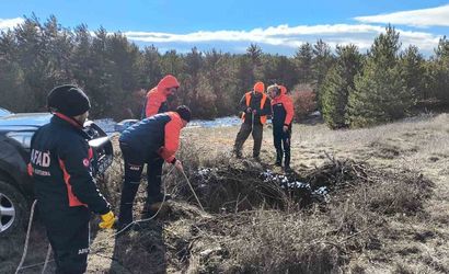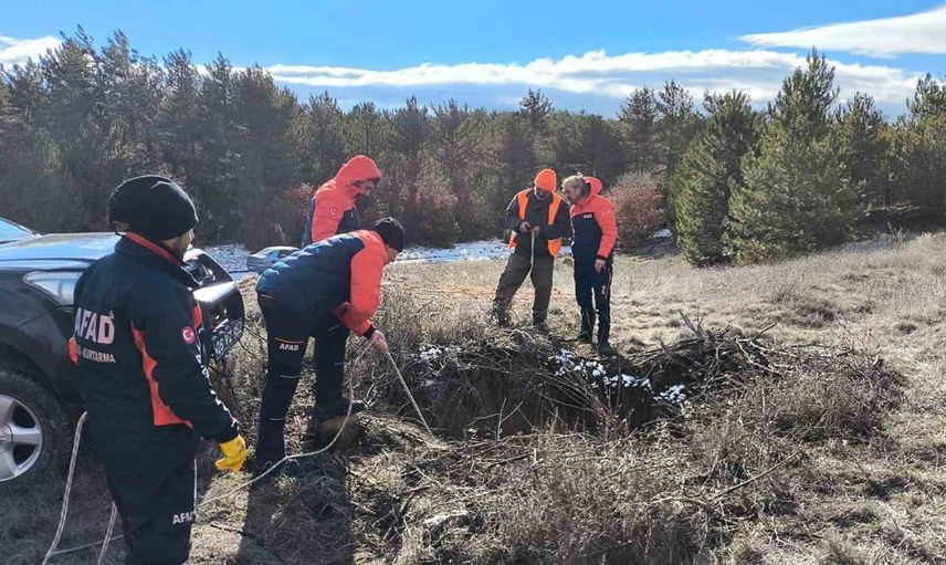 Ekipler, bölgeye 2 araç ve 5 personel ile sevk edildi. Titizlikle yürütülen çalışmalar sonucunda köpek, saat 13.40'ta bulunduğu yerden çıkarılarak sahibine teslim edildi.