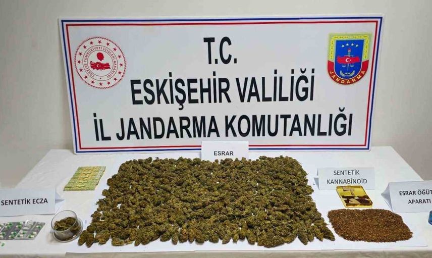 ESKİŞEHİR İL JANDARMA KOMUTANLIĞI EKİPLERİNCE YAPILAN İSTİHBARAT ÇALIŞMALAR NETİCESİNDE, SİVRİHİSAR İLÇESİNDE BİR ŞAHSIN UYUŞTURUCU MADDE SATIŞI YAPTIĞI BİLGİSİ ALINDI. ŞÜPHELİ ŞAHSIN EV VE EKLENTİLERİNDE, EKİPLERCE YAPILAN ARAMADA; 769 GRAM ESRAR, 100 GRAM SENTETİK BONZAİ, 23 ADET SENTETİK ECZA HAP, 5 PAKET SİGARA SARMA KAĞIDI VE 1 ADET ESRAR ÖĞÜTME APARATI ELE GEÇİRİLDİ. OLAY ŞÜPHELİSİ İŞLEMLERİNİN ARDINDAN ÇIKARILDIĞI MAHKEMECE TUTUKLANDI.