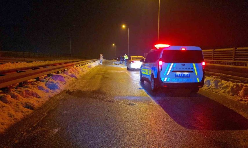 Edinilen bilgilere göre, M.A. (54) idaresindeki 27 SS 184 plakalı kamyonet, sürücünün buzlanan yolda direksiyon hakimiyetini kaybetmesi sonucu bariyerlere çarptı. Arkadan gelen F.Y. (38) yönetimindeki 44 AJJ 781 plakalı otomobil de kayarak kamyonete çarptı. Kazaya müdahale etmek için gelen arkadaşının içinde bulunduğu 27 ATK 294 plakalı otomobil ise kayganlaşan yolda duramayarak bariyerlere çarptı.