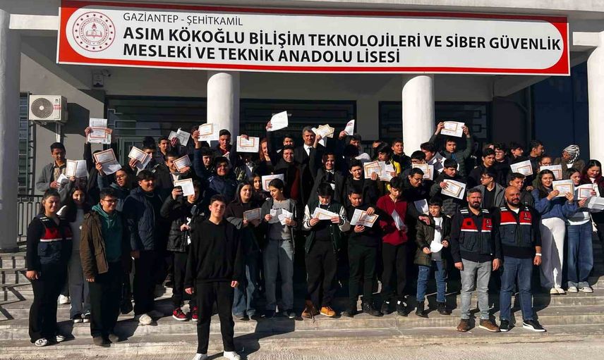 Gaziantep İl Jandarma Komutanlığı Siber Suçlarla Mücadele Şube Müdürlüğü ekipleri, Şehitkamil İlçesi Asım Kökoğlu Bilişim Teknolojileri ve Siber Güvenlik Mesleki ve Teknik Anadolu Lisesinde öğretmen ve öğrencilere sosyal medya kullanımı hakkında kapsamlı bir eğitim verdi.