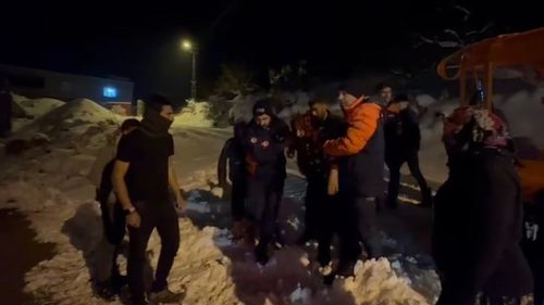 Gaziantep Bayatlı Mahallesi'nde nefes darlığı çeken Sultan Şüngör, kar nedeniyle ulaşılamayınca AFAD paletli kar aracıyla tahliye edilip ambulansa teslim edildi.