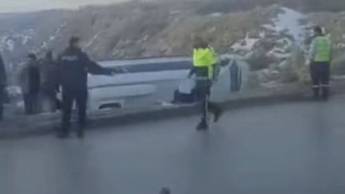 Gaziantep’te gizli buzlanma nedeniyle kayganlaşan yolda kontrolden çıkan işçi servisinin şarampole devrilmesi sonucu 10 işçi hafif şekilde yaralandı.