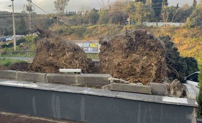 Kocaeli'nin Gebze ilçesinde etkili olan fırtına sırasında, Eskihisar Mahallesindeki Eskihisar Caddesi üzerinde bulunan bir ağaç, park halindeki iki otomobilin üzerine devrildi.