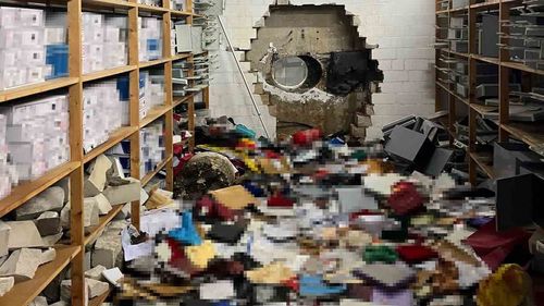 Gelsenkirchen'de Noel tatilinde hırsızlar, otopark altındaki tünelden bodruma inip matkapla duvarı delinmiş banka kasalarını soydu; çalınan miktar inceleniyor.