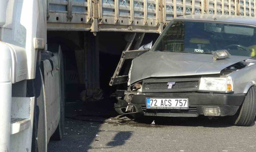 Kaza öğle saatlerinde çevre yolunda gerçekleşti. Edinilen bilgilere göre otomobil, dönüş yapan tıra çarparak tırın dorsesinin altında kaldı.