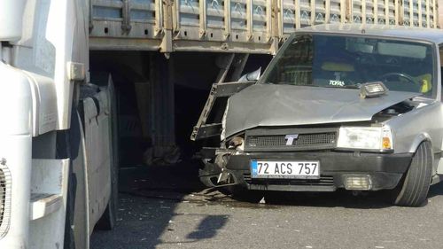 Batman’ın Gercüş ilçesinde öğle saatlerinde tırla çarpışan otomobil dorsenin altında kaldı; sürücü yara almadı, araçlarda maddi hasar oluştu.