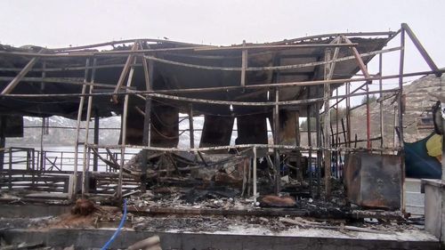 Halfeti'de Fırat Nehri Üzerindeki Duba Restoran Yine Yandı