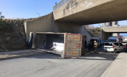 HATAY’DA SÜRÜCÜSÜNÜN KONTROLÜNÜ KAYBETMESİYLE DEVRİLEN HAFRİYAT KAMYONUN SÜRÜCÜSÜ YARALANDI.
