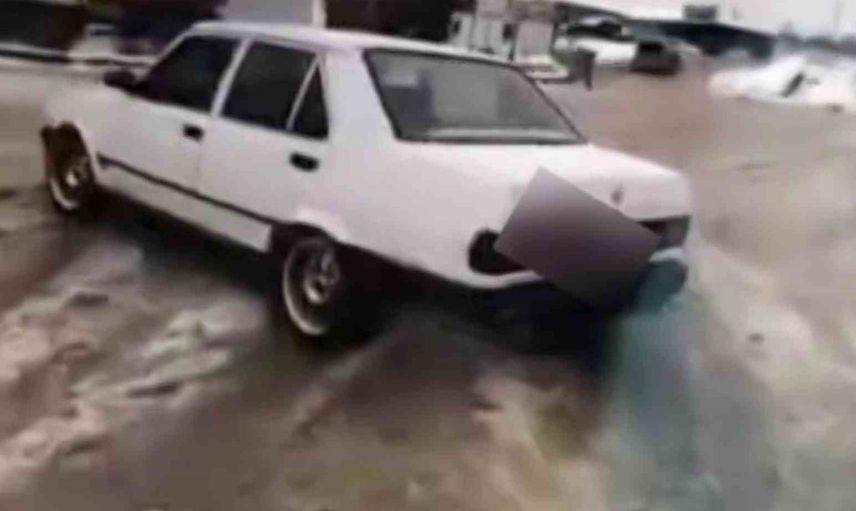 Hatay'da karla kaplı zeminde drift yaptığı görülen Tofaş marka aracın sürücüsü, yaptığı paylaşımla kısa sürede gündeme geldi.