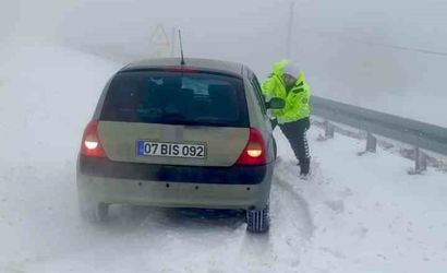 Polis ekipleri, yollarda mahsur kalan vatandaşların yardımına koştu. Yeri geldiğinde kürekle karı temizleyerek araçları kurtaran ekipler, yeri geldiğinde ise araçları iterek sürücülerin ilerlemesine yardımcı oldu.
