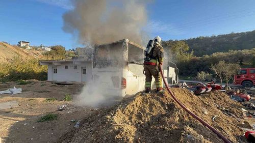 Hatay'da Park Halindeki Yolcu Otobüsü Yandı