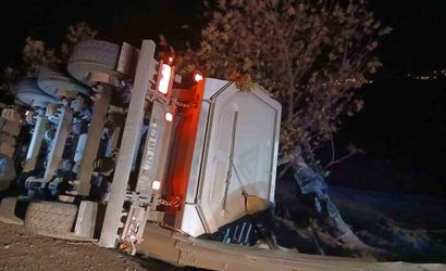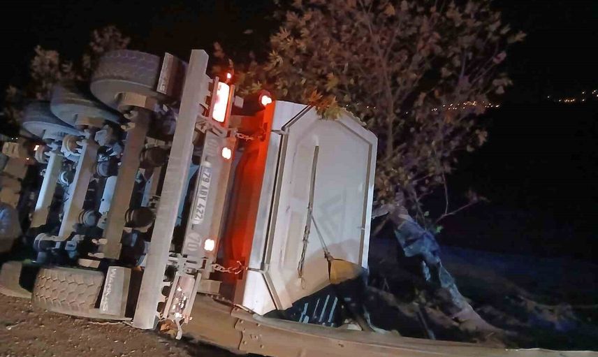 Hatay'da, Krıkhan - Hassa çevre yolu üzerinde sürücüsünün kontrolünü kaybetmesi sonucu 79 ABY 151 plakalı tır devrildi.