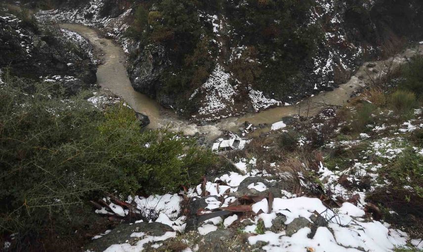 Hatay’ın Defne ilçesi Ballıöz Mahallesinde meydana gelen kazada, Tofaş marka otomobil, kar yağışıyla birlikte zeminin kayganlaşması sonucu sürücünün kontrolünü kaybetmesiyle metrelerce uçurumdan dereye uçtu.