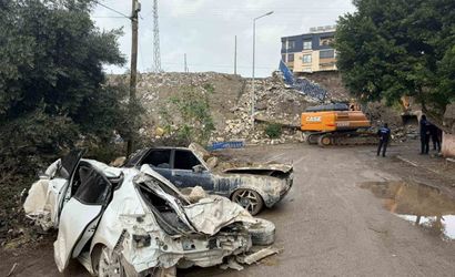 HATAY’DA ÇÖKEN İSTİNAT DUVARININ ALTINDA KALARAK HURDAYA DÖNEN ARAÇLAR EKİPLERİN ÇALIŞMALARIYLA KURTARILDI.