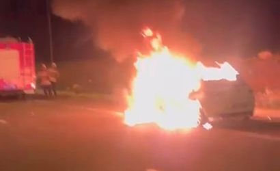HATAY’DA SEYİR HALİNDEYKEN ALEVLERE TESLİM OLAN OTOMOBİL YANARAK KULLANILMAZ HALE GELDİ.