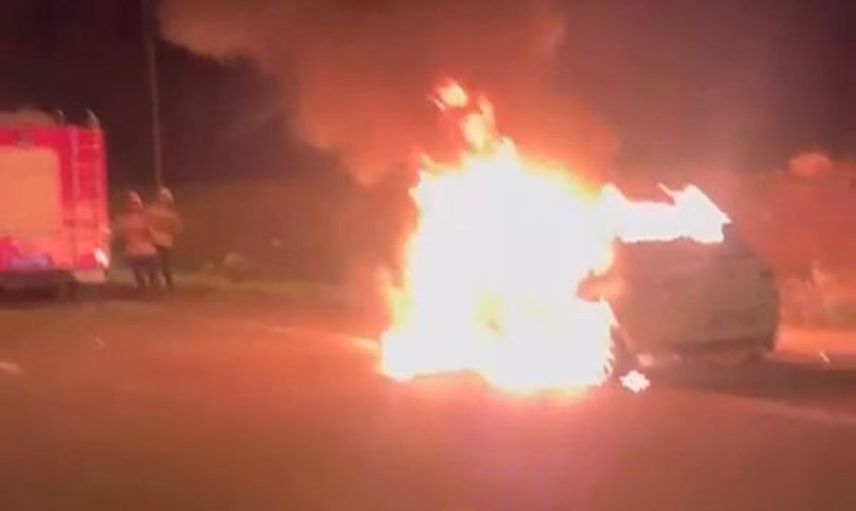 Yolda seyir halinde bulunan araçta motor kısmı alev aldı ve yangın kısa sürede büyüdü. Durumun bildirilmesi üzerine bölgeye itfaiye ekipleri sevk edildi.