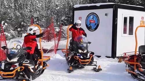Ilgaz Dağı'nda JAK timleri, kar motoru ve dron desteğiyle gece gündüz nöbet tutarak yerli ve yabancı turistlere güven sağlıyor.