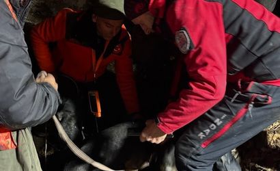 İnegöl'de İNDAK 7 Saatlik Operasyonla Mahsur Kalan İki Av Köpeğini Kurtardı