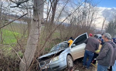 Bursa'nın İnegöl ilçesinde meydana gelen tek taraflı kazada, kontrolden çıkan otomobilin ağaca çarpması sonucu sürücü yaralandı.