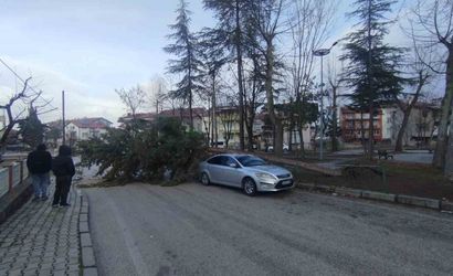 Yedişehitler Mahallesi'ndeki bir parkta bulunan ağaç, kökünden sökülerek park halindeki bir otomobilin üzerine devrildi. Olayda can kaybı ya da yaralanma bildirilmezken, araçta maddi hasar oluştu.