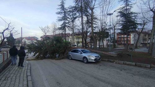 Isparta'da şiddetli fırtına Yedişehitler Mahallesi'nde bir ağacı kökünden söktü; park halindeki araç üzerine devrildi. Şans eseri yaralanma olmadı, araçta maddi hasar oluştu.