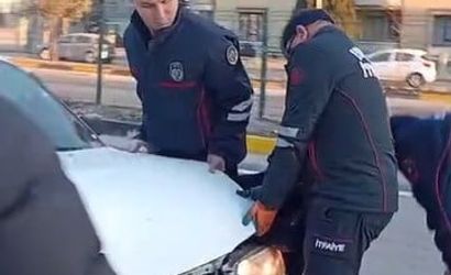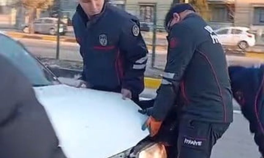 Kazayı görenlerin ihbarı üzerine olay yerine sağlık, polis ve itfaiye ekipleri sevk edildi. Çarpmanın etkisiyle araç içerisinde sıkışan sürücü, itfaiye ekiplerinin çalışmasıyla çıkarıldı.