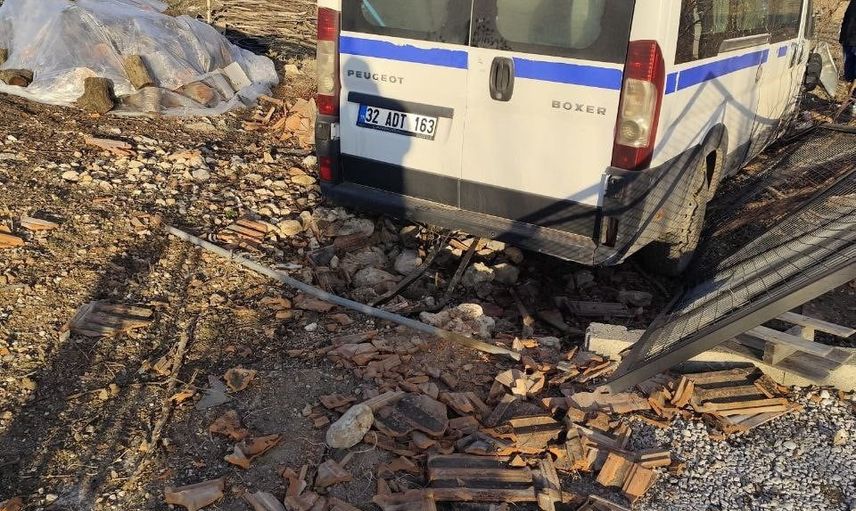 S.Y. idaresindeki 32 ADT 163 plakalı Peugeot marka hafif ticari araç, önce yolun sağındaki şarampole girip ardından tek katlı bir bahçe evinin demir sürgülü kapısına çarparak bahçeye daldı.