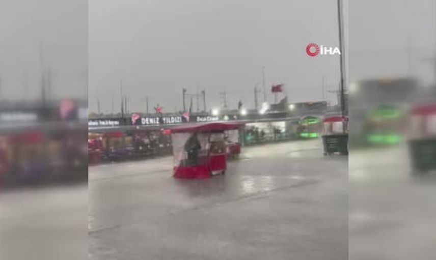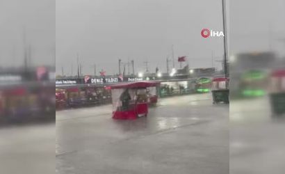 Fatih Eminönü'nde yaşanan yoğun yağış ve fırtına, özellikle seyyar satıcılar'ı hedef aldı. Rüzgârın şiddetiyle birçok tezgah devrildi, satıcılar tezgahları tutmakta zorlandı.