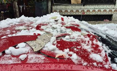 Edinilen bilgilere göre, çatıda biriken kar aniden koparak park halindeki otomobilin üzerine düştü. Karın ağırlığıyla otomobilin çatısında çökme oluşurken, cam ve kaput kısmında da hasar meydana geldi.